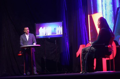 Yadgar Jaf [M] shares a ride with members f other parties during 10 Questions program presented by Ranj Sangawi [R].