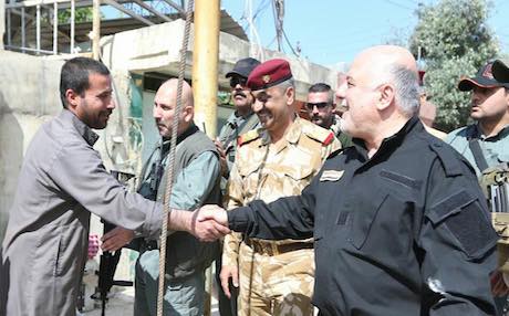He also visited a number of liberated neighbourhoods in western Mosul, greeting civilians.