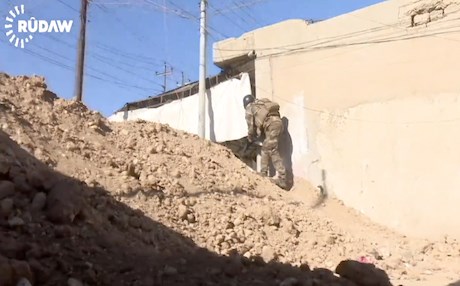 Iraqi army troops in Mosul are beginning to move from Gogjali towards Adan and Khazra where heavy clashes are ongoing. Civilians, separated from ISIS by a dirt mound, are fleeing the battle.