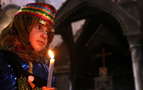 A Christian girl holds a candle as she attends a mass at the Church of the Immaculate Conception.
