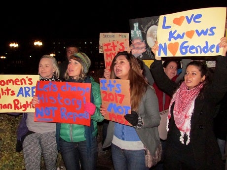 A few days earlier, a group of mainly foreign men and women had organised a rally to draw attention to women’s rights issues timed to coincide with worldwide anti-Donald Trump rallies.