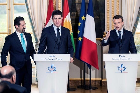 “I reaffirmed to the Prime Minister Nechirvan Barzani the respect to all the constitutional rights of the Kurdistan Region and the Kurdish nation within the framework of a united Iraq,” Macron said, according to the official Kurdish translation.
