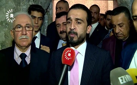 Mohammed al-Halbousi, the speaker of the Iraqi parliament, visits Yezidis in Sheikhan on December 14, 2018. Photo: Rudaw TV