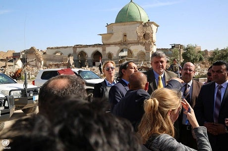 He also visited the heavily damaged Old City and the al-Hadba minaret that ISIS blew up during the offensive to regain the city.