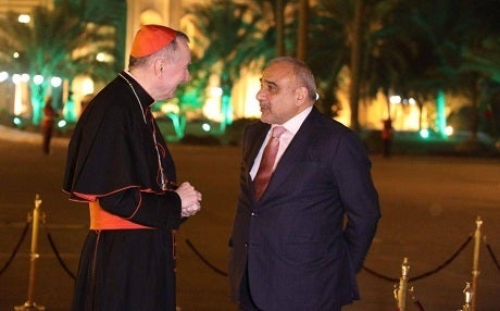 Vatican Secretary of State Cardinal Pietro Parolin and Iraqi Prime Minister Adil Abdul-Mahdi. Photo: PM Office