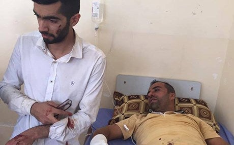 Yasr Abdulrahman, and his cameraman Hajar Mohamad from Speda channel, in hospital. Photo: Speda TV