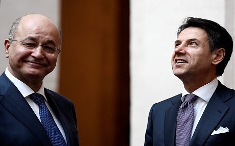 The Iraqi president also met with Prime Minister Guiseppe Conte.