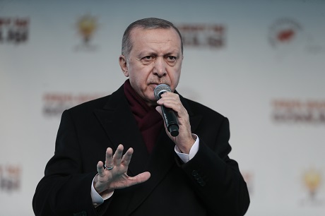 Turkish President and the leader of the AKP Recep Tayyip Erdogan addresses the crowd during a rally in Etimesgut district of Ankara, Turkey on February 20, 2019. Photo: AA