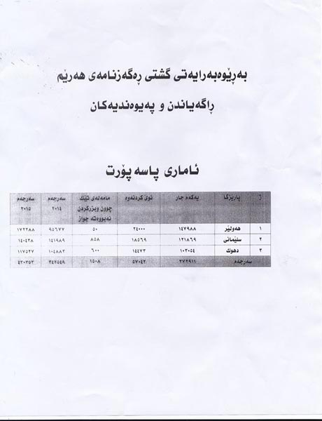 لیوا دلێر ئاکۆیی، بەڕێوەبەری گشتیی رەگەزنامە و پاسپۆرتی هەرێـمی کوردستان رایگەیاند، تەنها ئەمساڵ 415 هەزار و 36 ناسنامەی باری شارستانی، 203 هەزار و 737 راگەزنامەی عێراقی، 430 هەزار و 353 پاسۆرت دراونەتە هاونیشتمانیان".