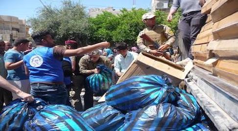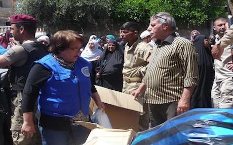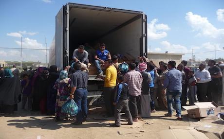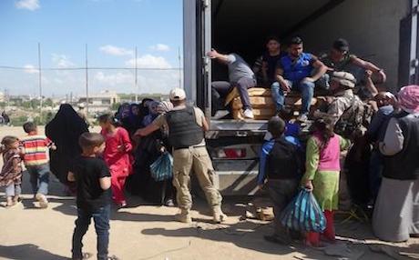 During the distribution, the sounds of clashes between ISIS and military forces working to retake the western part of the city just four to five kilometers away could easily be heard.