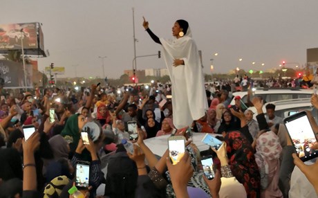 Yerel fotoğrafçı Lana Haroun'un çektiği görüntü, Salah'ın Sudan'ın başkenti Hartum'daki cumhurbaşkanlığı ve ordu merkezinin dışındaki bir insan deniziyle çevrili beyaz bir arabanın üzerinde durduğunu gösteriyor.