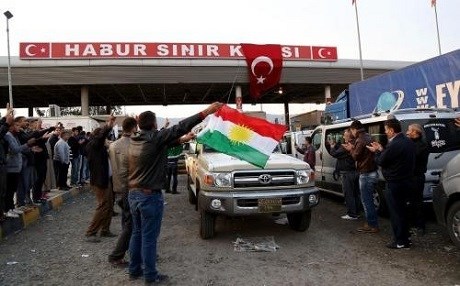 A convoy carrying heavy weapons belonging to Kurdish Peshmerga forces, crosses into Turkey from the Habur border crossing on Turkish-Kurdistani border in Sirnak province of Turkey, on October 29, 2014. The Kurdish Regional Government in Iraq then sent its forces to fight alongside the Kurdish groups against ISIS militants in the Syrian town of Kobane under a special arrangement with Turkey. Photo: Ahmet Bolat/AA