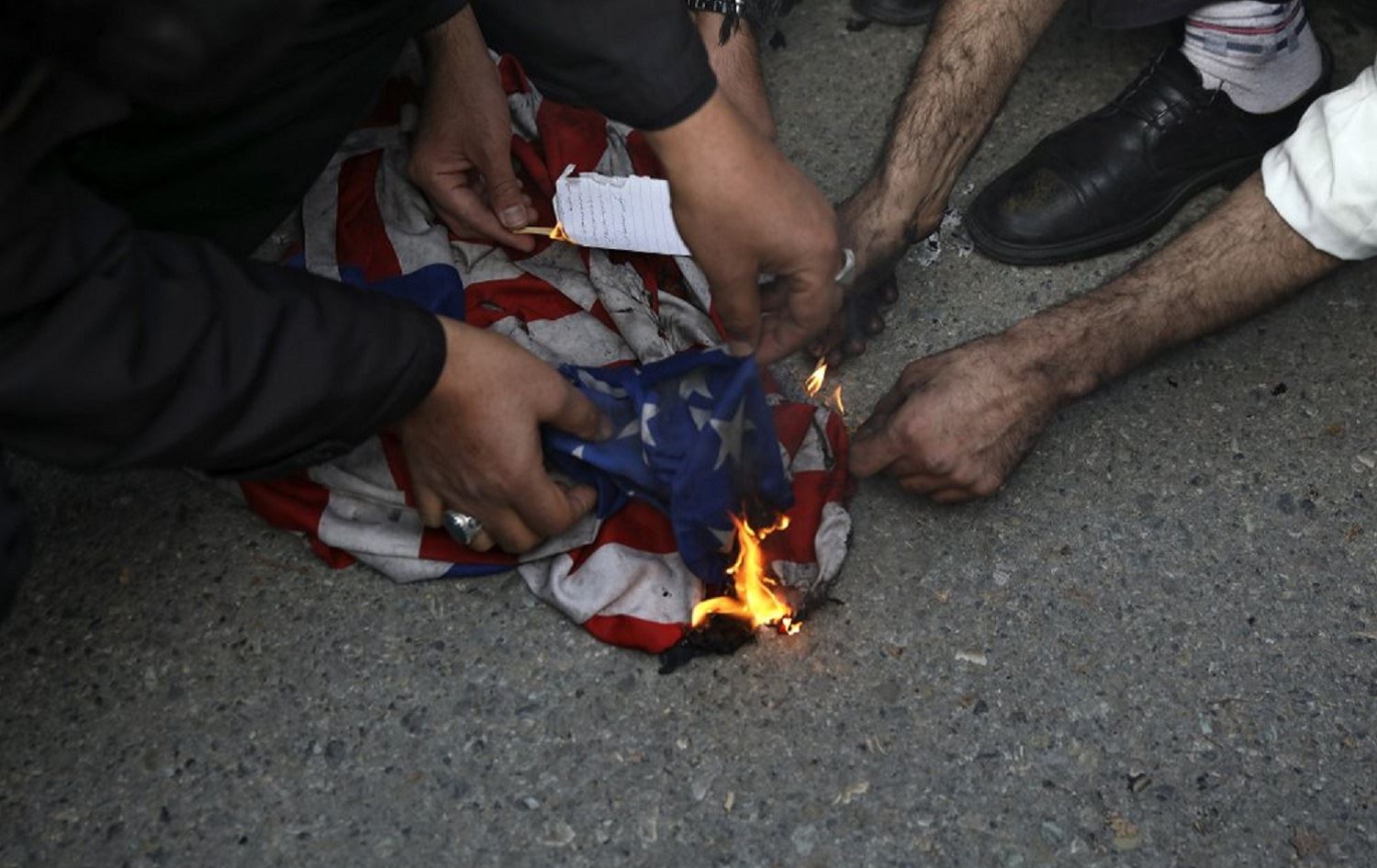 Protesters burn a US flag during a demonstration over the U.S. airstrike in Iraq that killed Iranian Revolutionary Guard Gen. Qassem Soleimani, in Tehran, Iran, Jan. 3, 2020. Photo: AP/Salemi