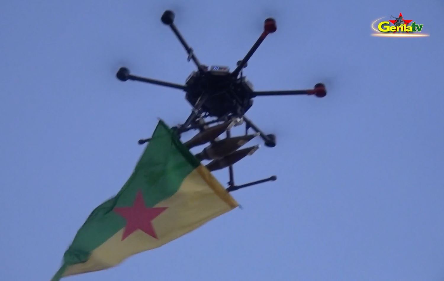 Gerila TV, a website linked to the Kurdistan Workers’ Party (PKK), has published 10 videos of PKK drone attacks against Turkish soldiers in 2021. The videos open with a shot of the PKK’s yellow and green flag with a red star in the middle waving in the air high above the ground, attached to a hexacopter that is carrying three bombs.