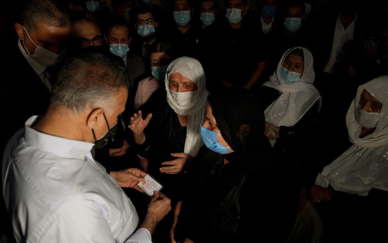 At the fort, Kadhimi met with survivors and families of victims. He “listened to them and heard of the sacrifices of their relatives that paved the way towards building a free and democratic Iraq, just as it paved the way for the demise of dictatorship.” A photograph shows Kadhimi, with his face mask pulled down over his chin, embracing a woman dressed in black.