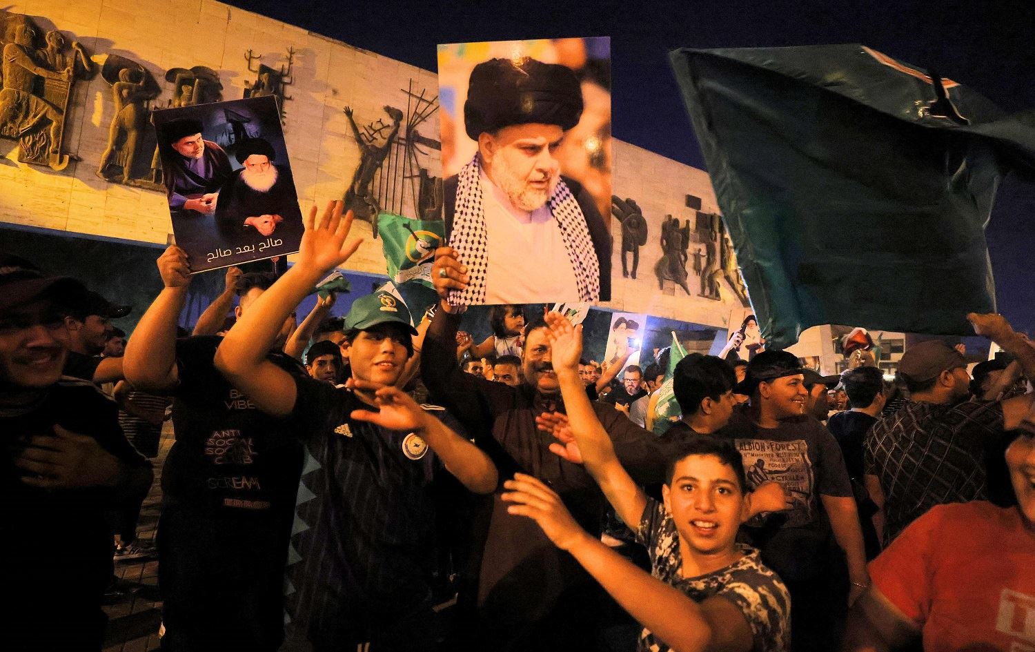 Supporters of Iraqi Shiite cleric Moqtada al-Sadr celebrate in Baghdad's Tahrir square on October 11, 2021 following the announcement of parliamentary election results. Photo: Ahmad al-Rubaye/AFP