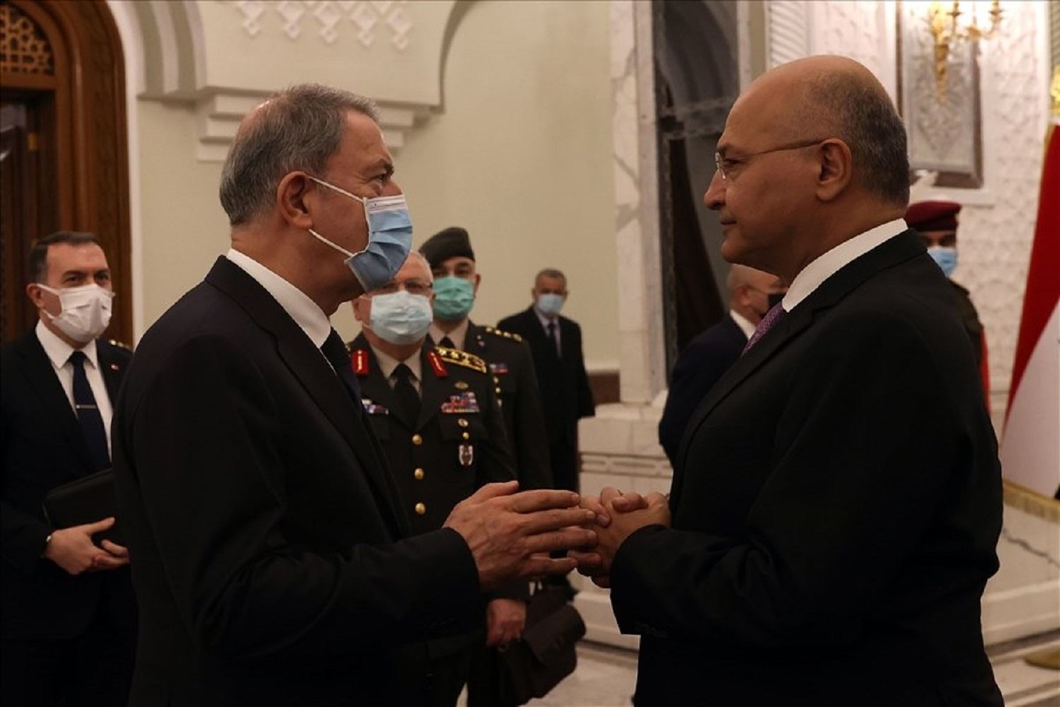 Turkish defense minister Hulusi Akar and Iraqi President Barham Salih in Baghdad. Date: January 18, 2021. Photo: Turkish defense ministry