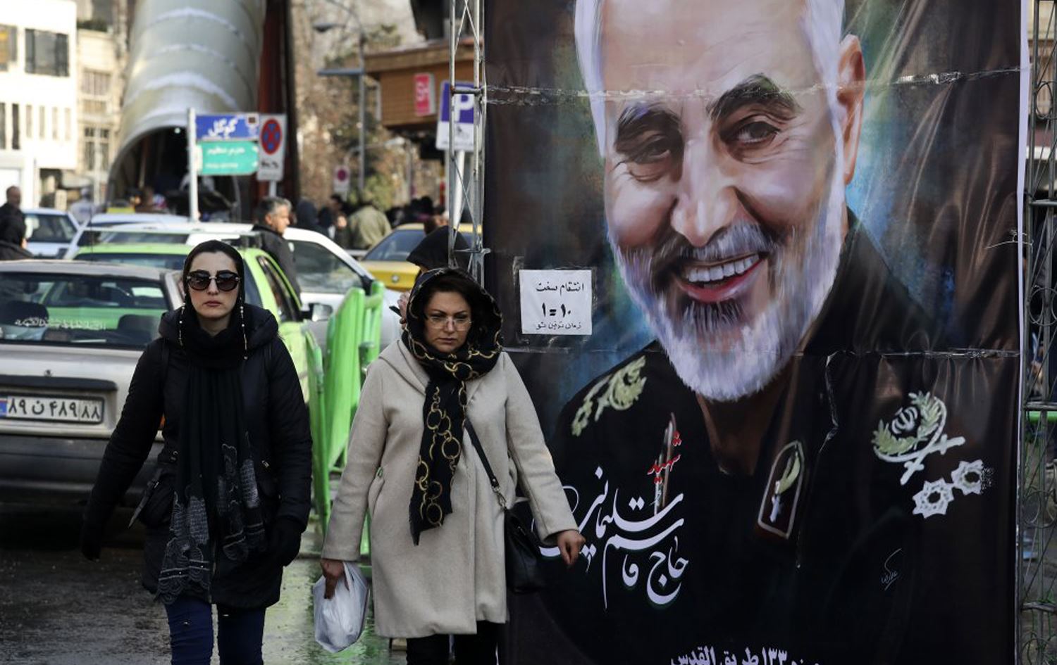 Women walk past a banner of Iranian Revolutionary Guard General Qasem Soleimani in Tehran, Iran, January 9, 2020. Photo: Vahid Salemi / AP