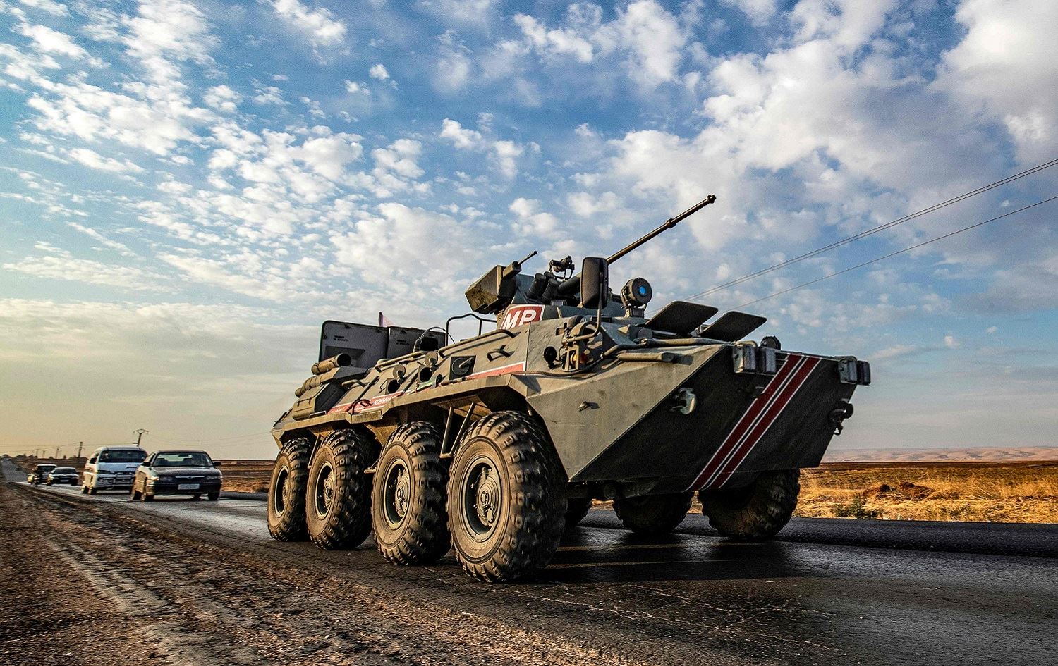 A Russian military police armoured vehicle drives along a road in the countryside near the northeastern Syrian town of Amuda in Hasaka province, October 24, 2019. Photo: Delil Souleiman / AFP
