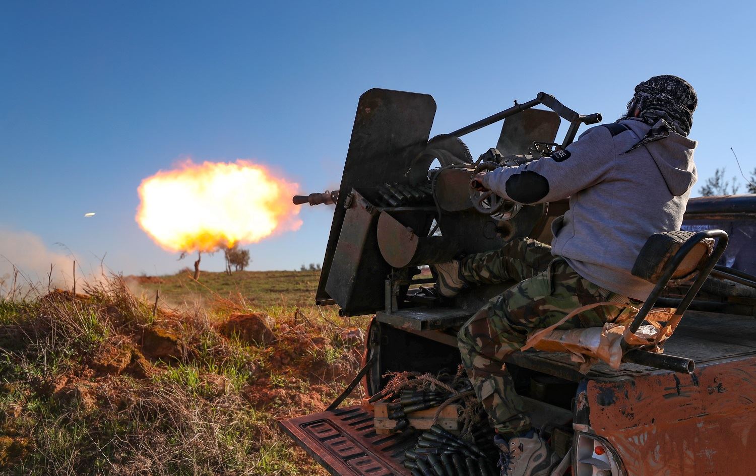A Turkey-backed Syrian fighter fires a truck-mounted gun toward the town of Saraqib in the eastern part of Idlib province in northwestern Syria on February 26, 2020. Photo: Omar Haj Kadour / AFP