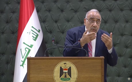 Iraqi Prime Minister Adil Abdul-Mahdi addresses reporters at a weekly press conference in Baghdad on July 9, 2019. Photo: Iraqi PMO