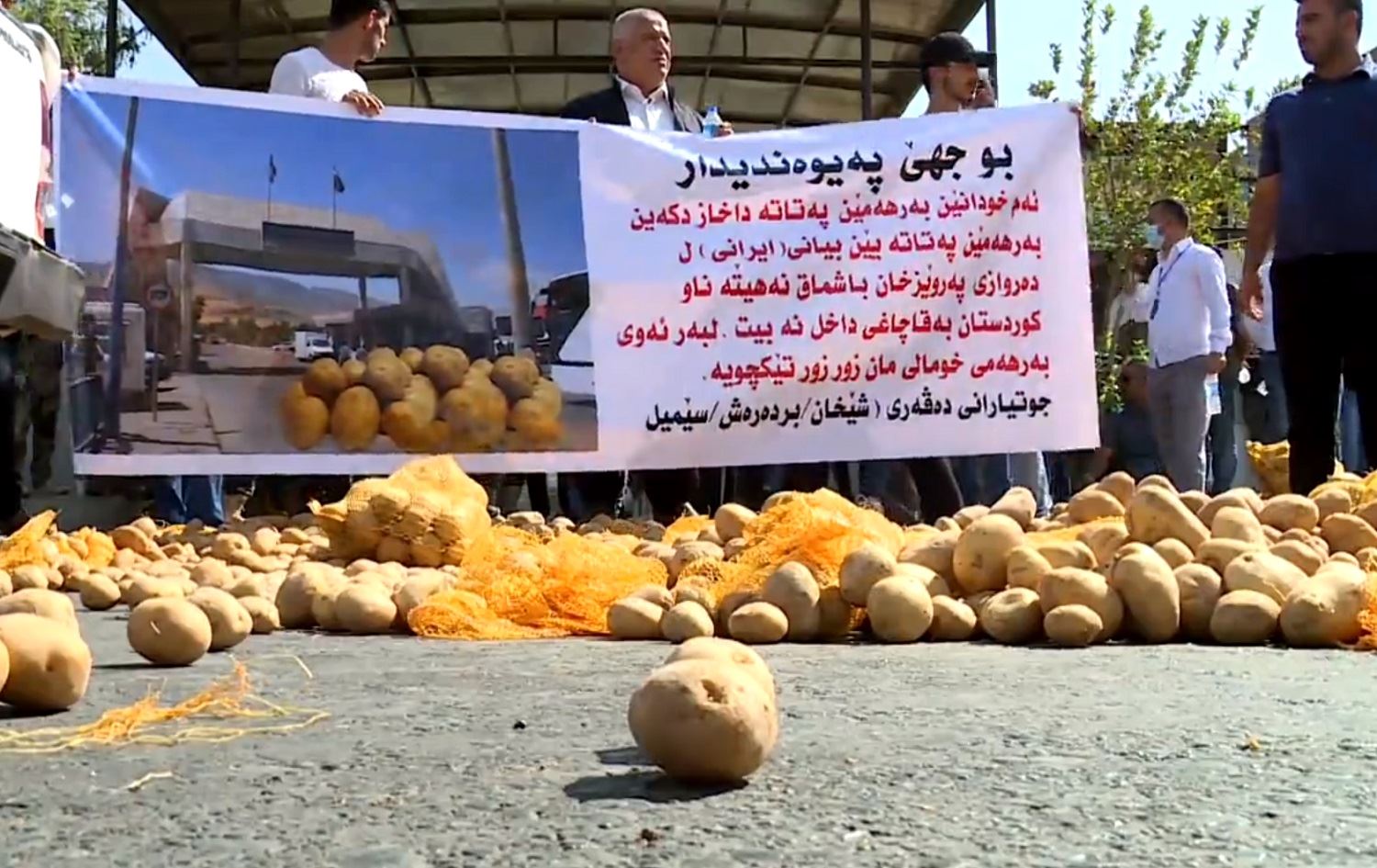 “Look at our potatoes. They have no problems. We have brought the potatoes here because we cannot sell them due to imports from Iran and Syria,” farmer Diyar Abubakr told Rudaw at the protest.