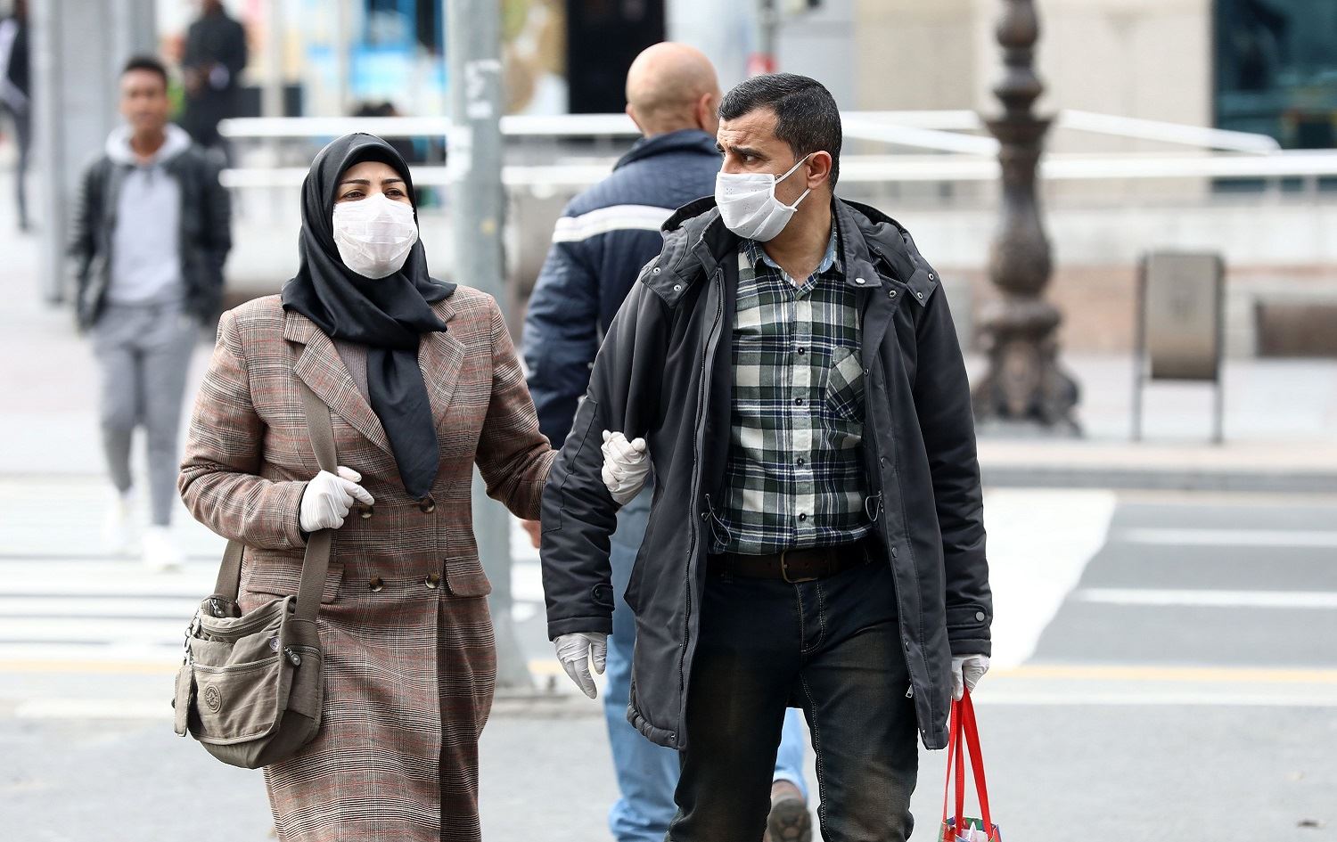 Pedestrians wearing facemasks walk on a street in Ankara, March 30, 2020. Photo: Adem Altan / AFP