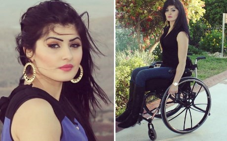 The Kurdish model also volunteers to help others who are disabled and using wheelchairs.