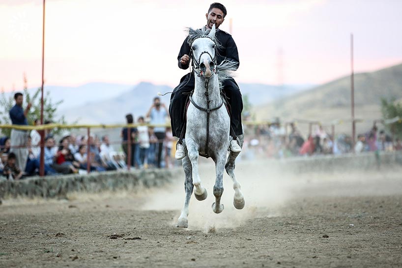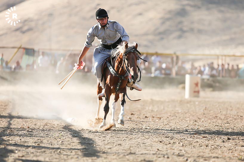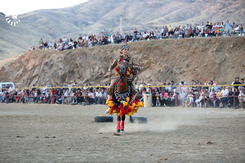 At a festival in eastern Kurdistan's Sina, participants put on display of traditional Kurdish past times including horseback riding.