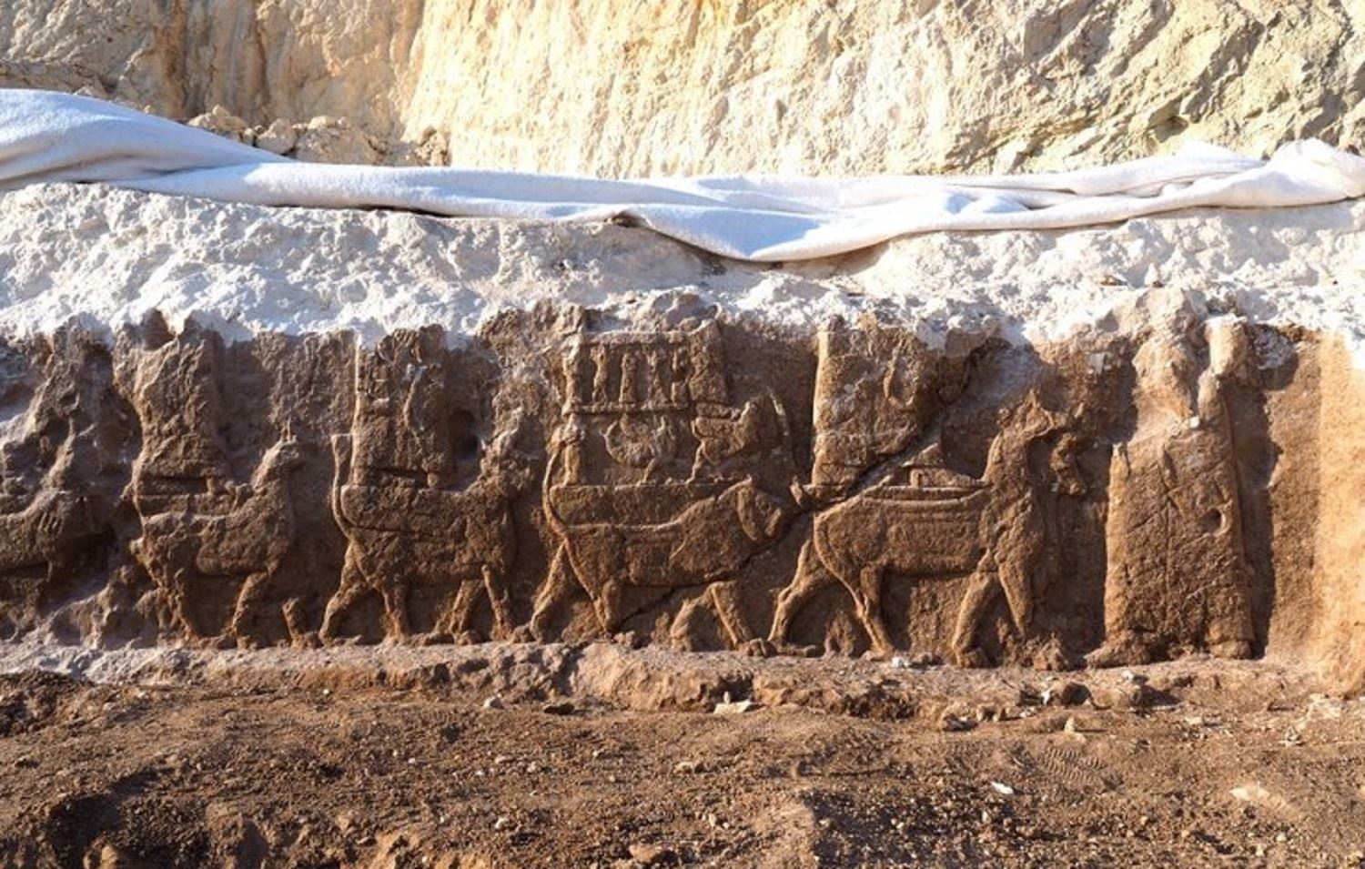 An Assyrian rock relief discovered by the Kurdish-Italian Faida Archaeological Project (KIFAP) in Faida, 20 kilometres south of Duhok, in autumn 2019. Photo via University of Udine press release