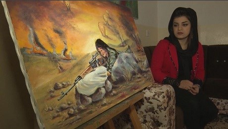 “She has made herself part of the painting, changing her character from being a teacher to a Peshmerga fighter. This is something different,” Saeeb said.