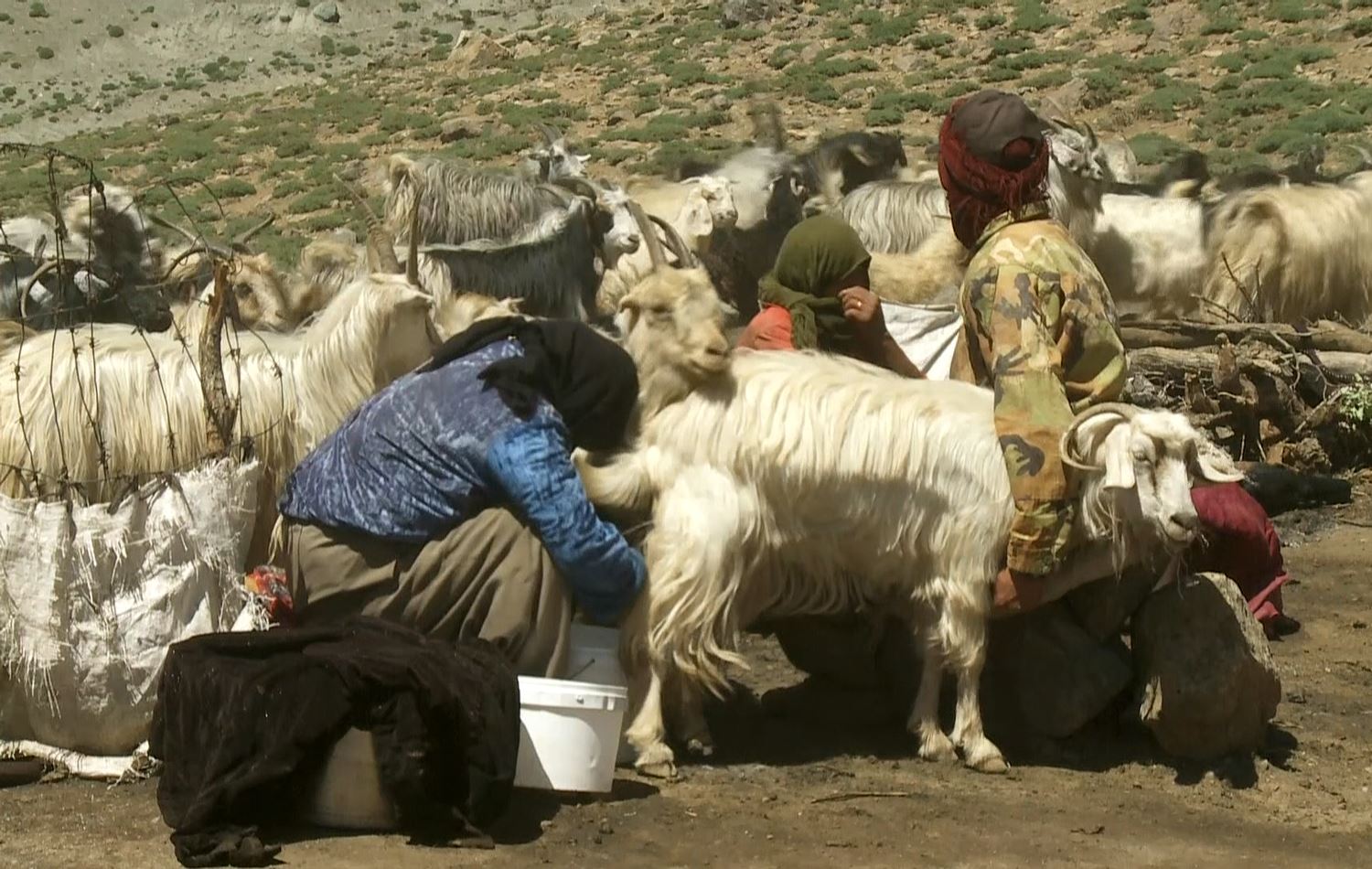 “We milk the cows and sheep, make cheese, and shake the mashka [a vessel to curdle milk],” said nomad Nasin Ibrahim.