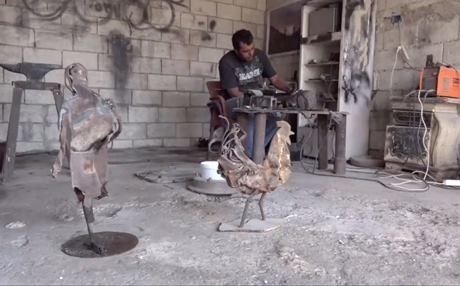 Nashaat Amme, a blacksmith from the northern Syrian city of Kobane, gathers the scrap of tanks and artillery scattered across the war ravaged region to build sculptures.
