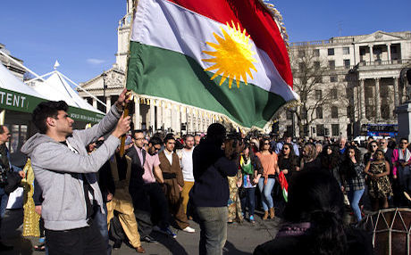 Saleh, a 24-year old Londoner, is a member of Secret Newroz, an organization recently founded by her brother, Hardy. The group used social media exclusively to spread the word about a flash mob at Trafalgar Square last Saturday. Their message: Kurds and non-Kurds, come one, come all to dance to methodical music together for just 20 or 30 minutes – enough time to gather a crowd, get people dancing and interest them in Kurdish culture.