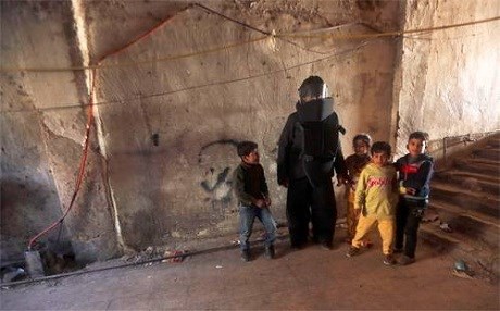 His friend, Muslim, wears the suit, drinks tea, visits shops and says to people that he found some level of security inside the mock-protective gear. "I knew it wasn't a real suit,” he said. “But at one point I actually felt it was protecting me and started imagining all the things I could do."