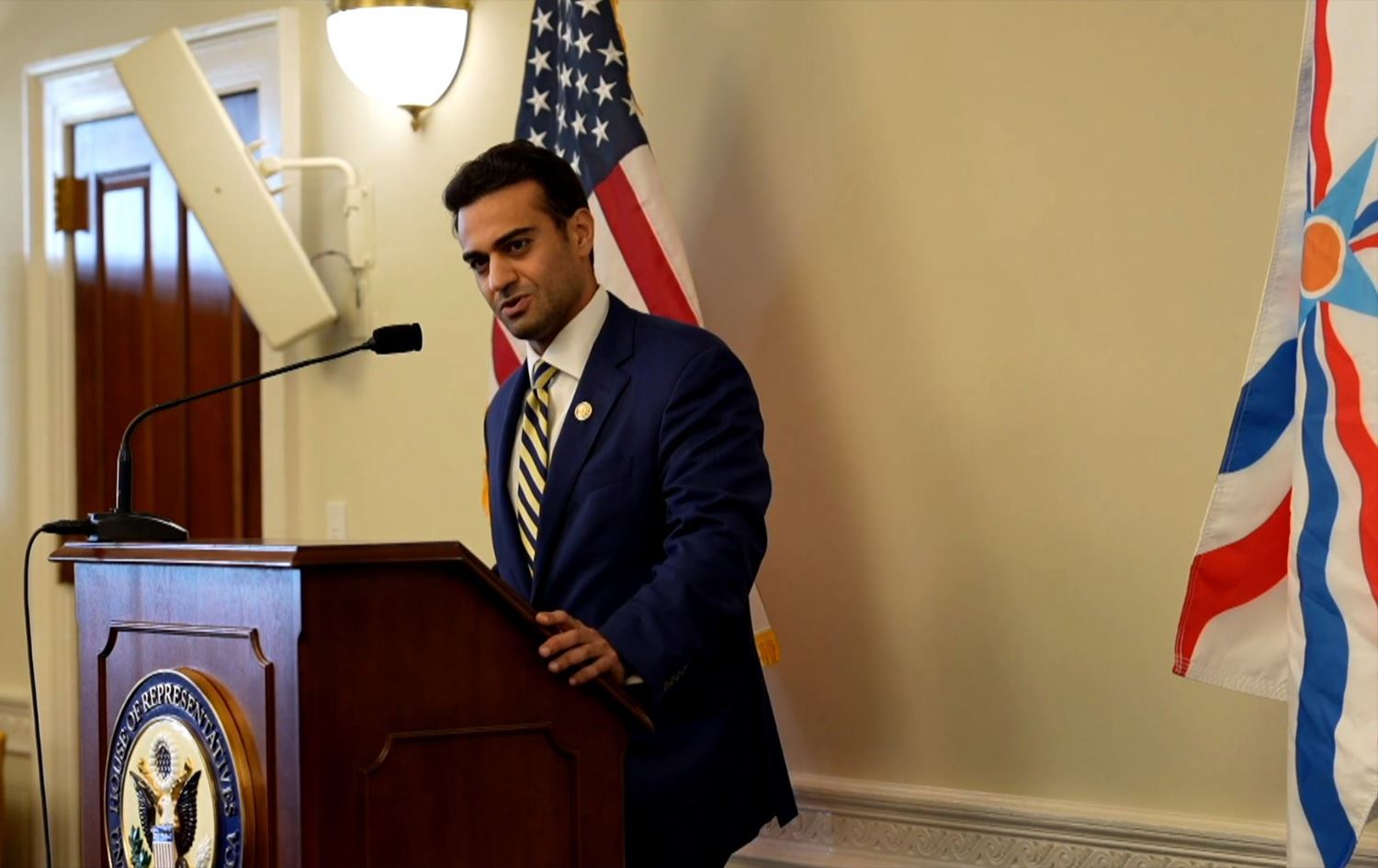 The US Congressman Abe Hamedeh giving a speech at Assyrian Martyrs' Day in Washington on July 23, 2025. Photo: screengrab/Rudaw