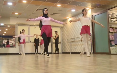 She is the only student among dozens of ballet dancers to be wearing the Islamic headscarf, making her stand out among her peers and giving the group a little diversity.
