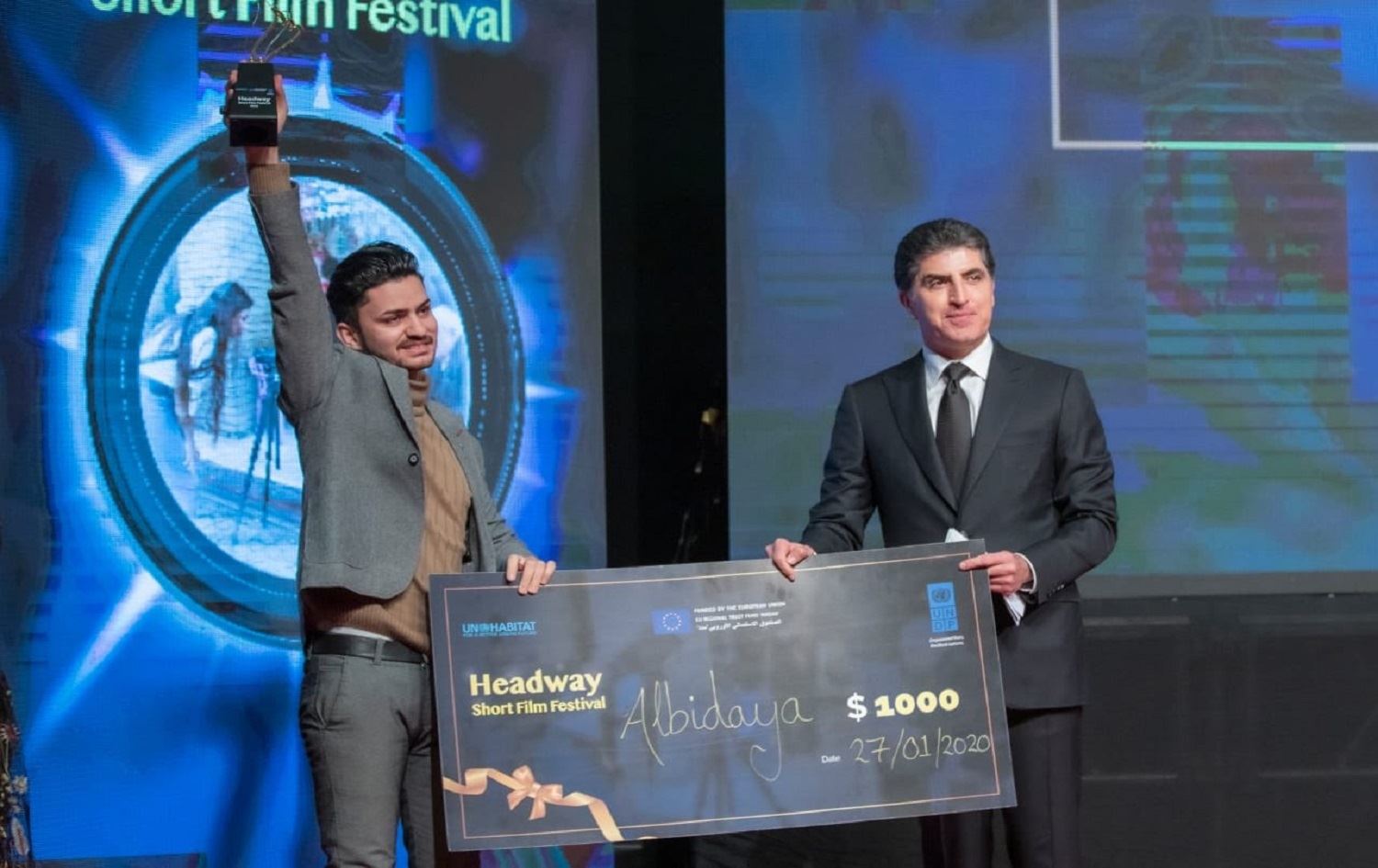 Director Younes Taha with Kurdistan Region President Nechirvan Barzani at Headway Short Film Festival on January 27, 2020. Photo: Twitter