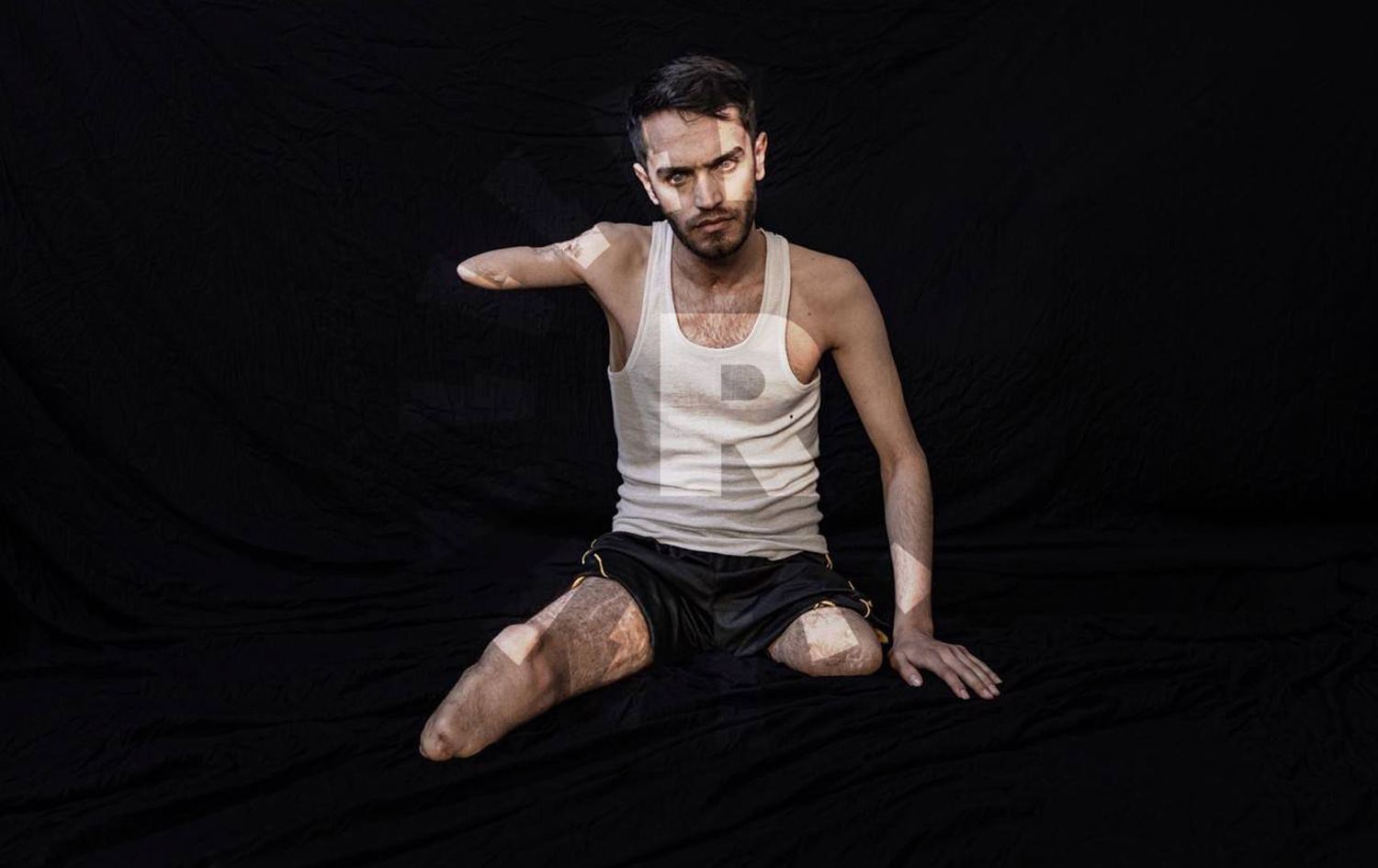 Salman Farman Saleh, born in 1992, joined the Peshmarga in 2009. The father of two was wounded in December 2014, clearing explosives from a field near Makhmour. He lost both legs, one hand, an eye and an ear. Photo: Younes Mohammed