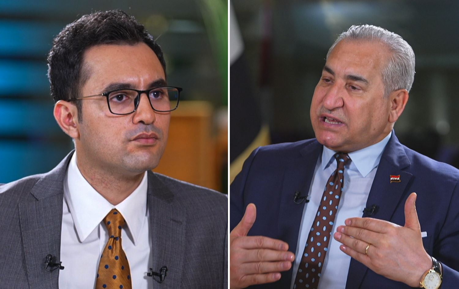 Iraq's Deputy Environment Minister Jassim al-Falahi (right) speaking to Rudaw’s Nwenar Fatih on the sidelines of the Baghdad International Water Conference. Photo: Rudaw