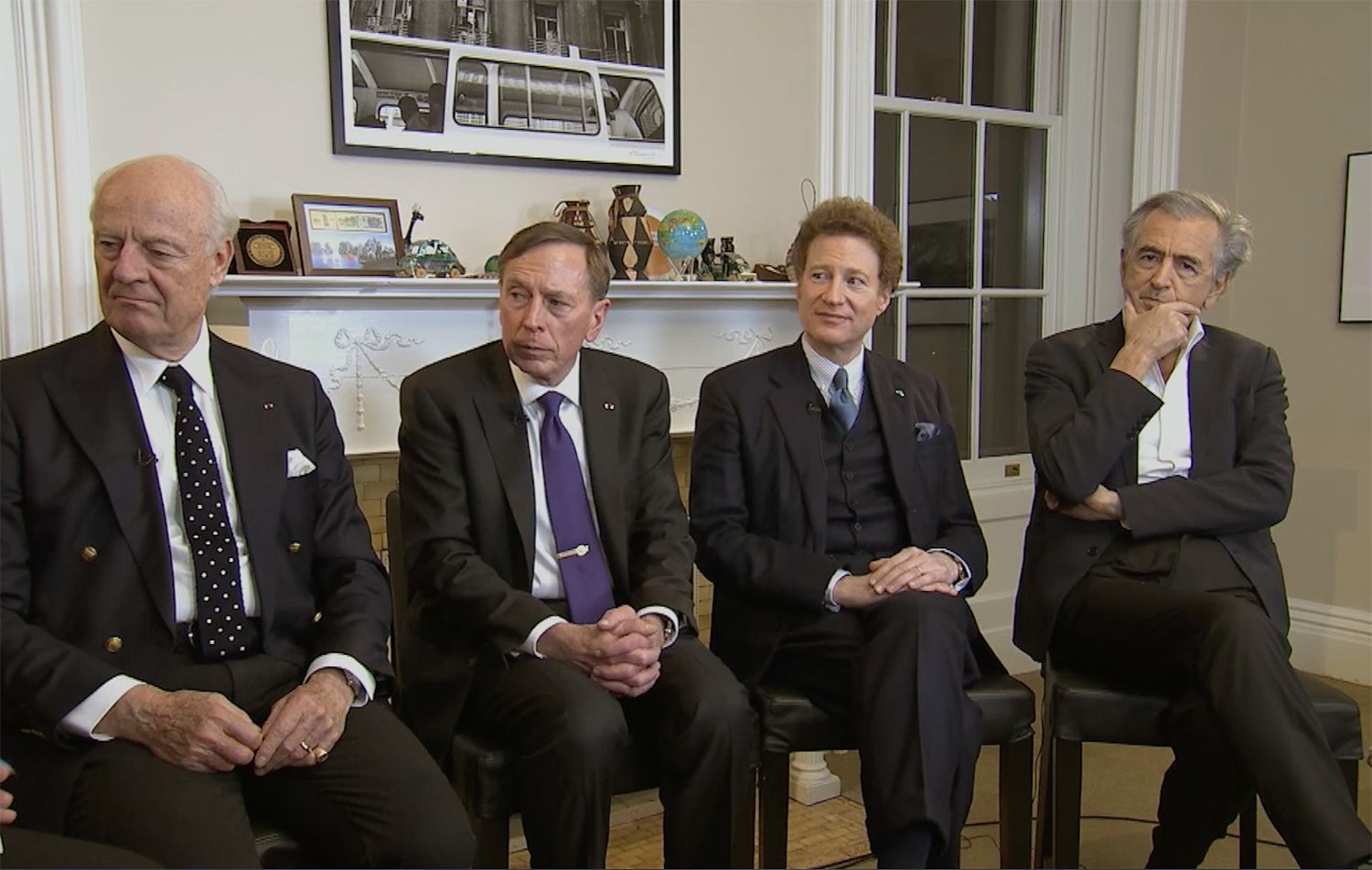 He was joined by former CIA director David Petraeus, former UN envoy to Syria Staffan de Mistura, French intellectual Bernard-Henri Lévy, and American billionaire and philanthropist Thomas Kaplan.