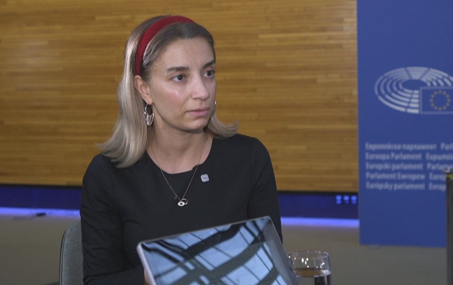 Evin Incir, European parliamentary member, speaking to Rudaw in Strasbourg, France. Photo: Screengrab / Rudaw