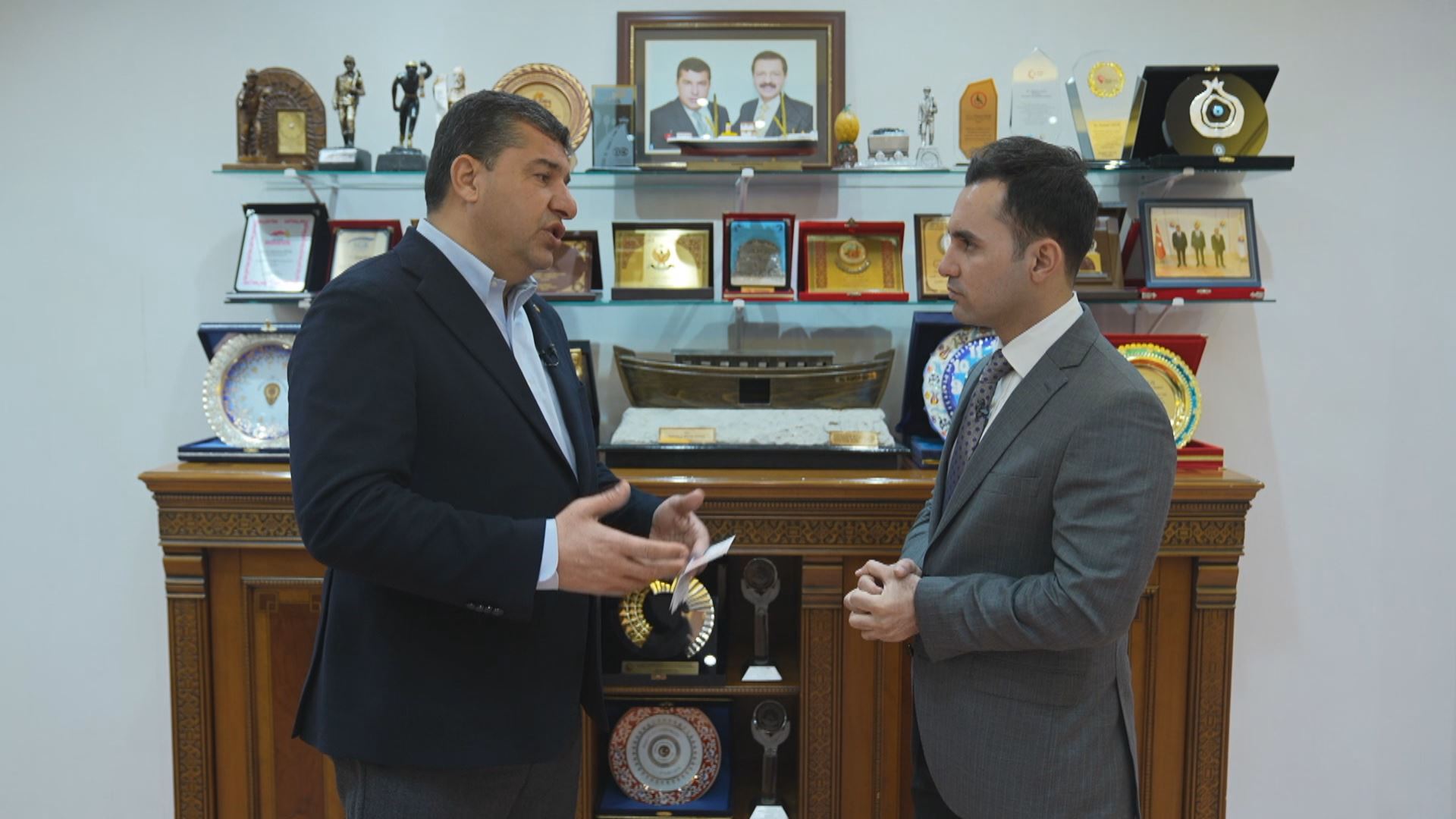 Osman Gelis, the head of Sirnak’s Chamber of Commerce, (left) speaks to Rudaw's Nwenar Fatih in Sirnak on March 12, 2024. Photo: Rudaw
