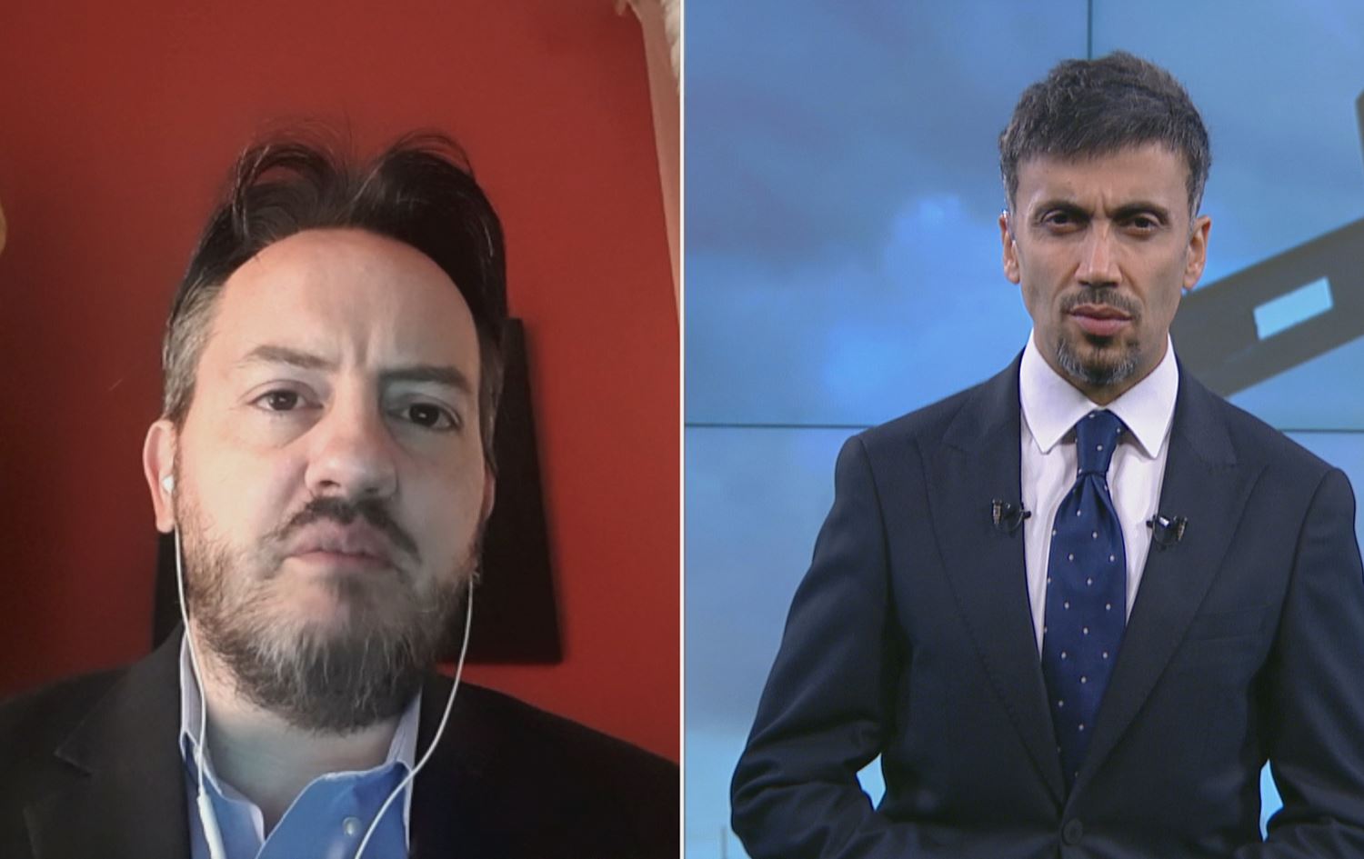Qatar Energy CEO Robin Mills speaking to Rudaw's Mohammed Sheikh Fatih on May 22, 2022. Photo: Rudaw