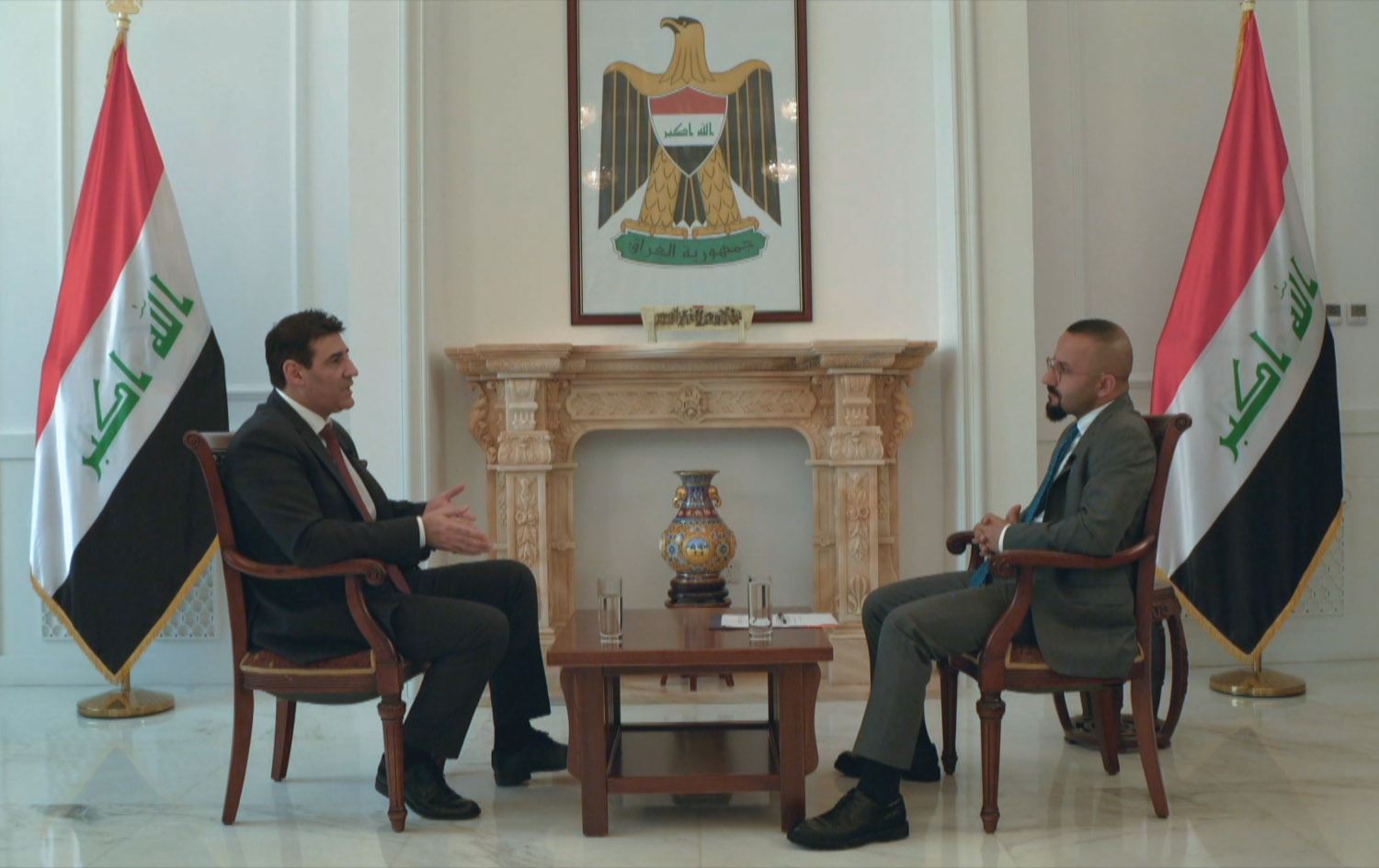 Iraqi Ambassador to China Shoresh Khalid (left) in an interview with Rudaw's Mahdi Faraj (right) in the Iraqi Embassy in Beijing on May 21, 2024. Photo: Rudaw