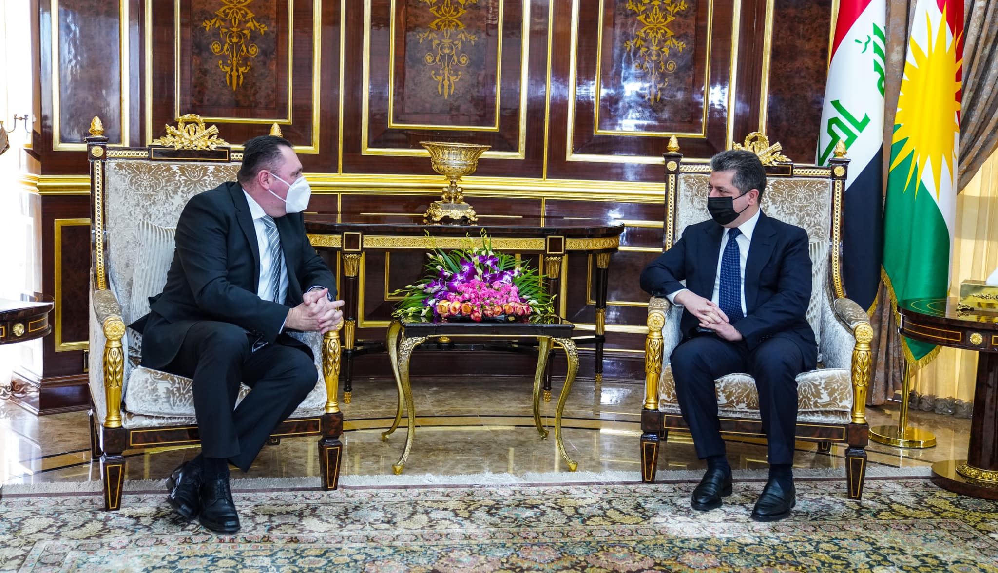 From left: Czech CG Karel Kortanek and KRG PM Masrour Barzani in Erbil. Date: February 1, 2022. Photo: handout/KRG