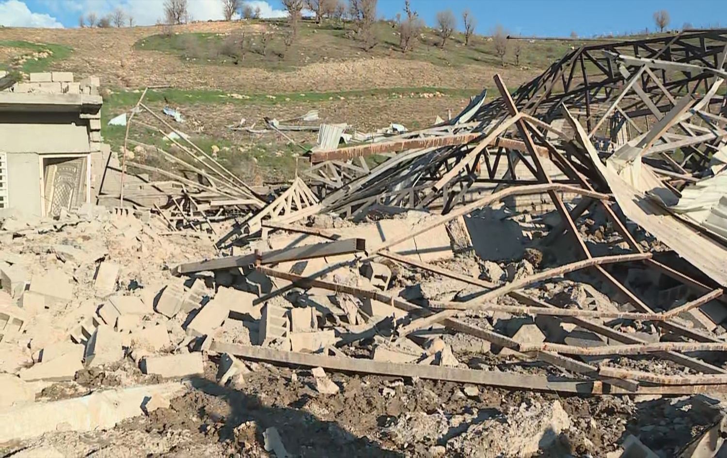 A charcoal factory that was destroyed following drone attacks in Erbil’s Khalifan district on April 1, 2026. Photo: Screengrab / Rudaw