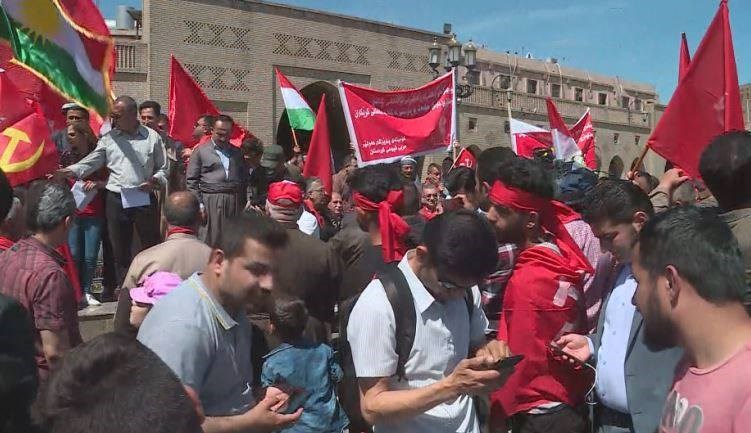 The Kurdistan Communist Party organized a demonstration in Erbil at the citadel calling on the government to improve their livelihoods.