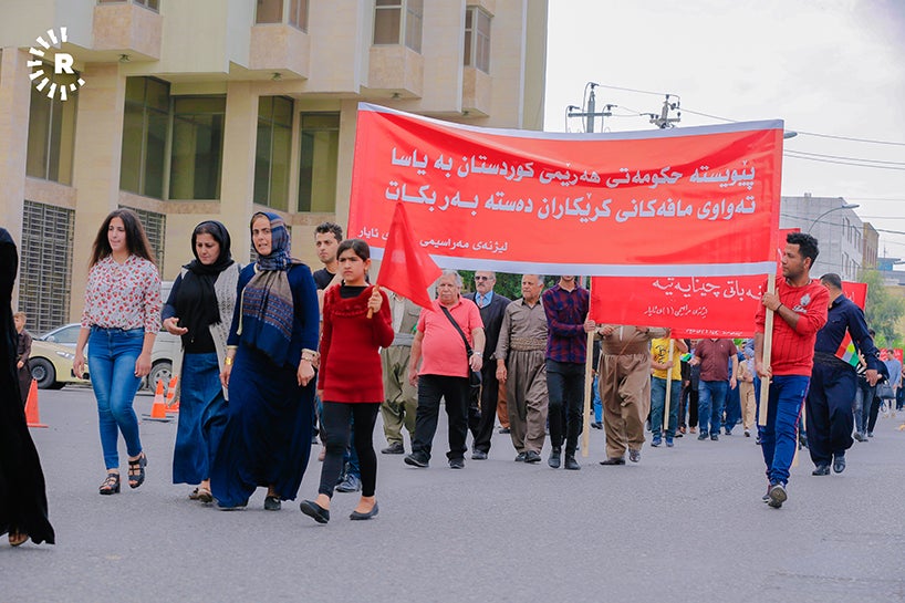 The Erbil branch of the Kurdistan Workers' Syndicate, the Communist Party of Kurdistan, the Kurdistan Toilers' Party, and the Kurdistan Democratic Movement led contingents of marchers through the streets of the Kurdistan Region capital.