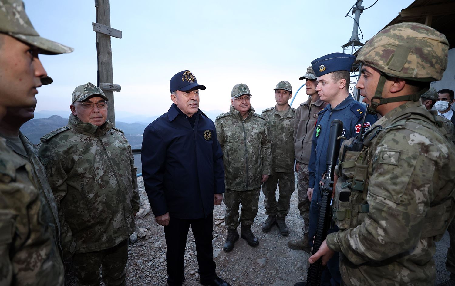 Turkish Defense Minister Hulusi Akar visiting a Turkish military base near the border with Iraq on April 25, 2022. Photo: Turkish defense ministry/Twitter